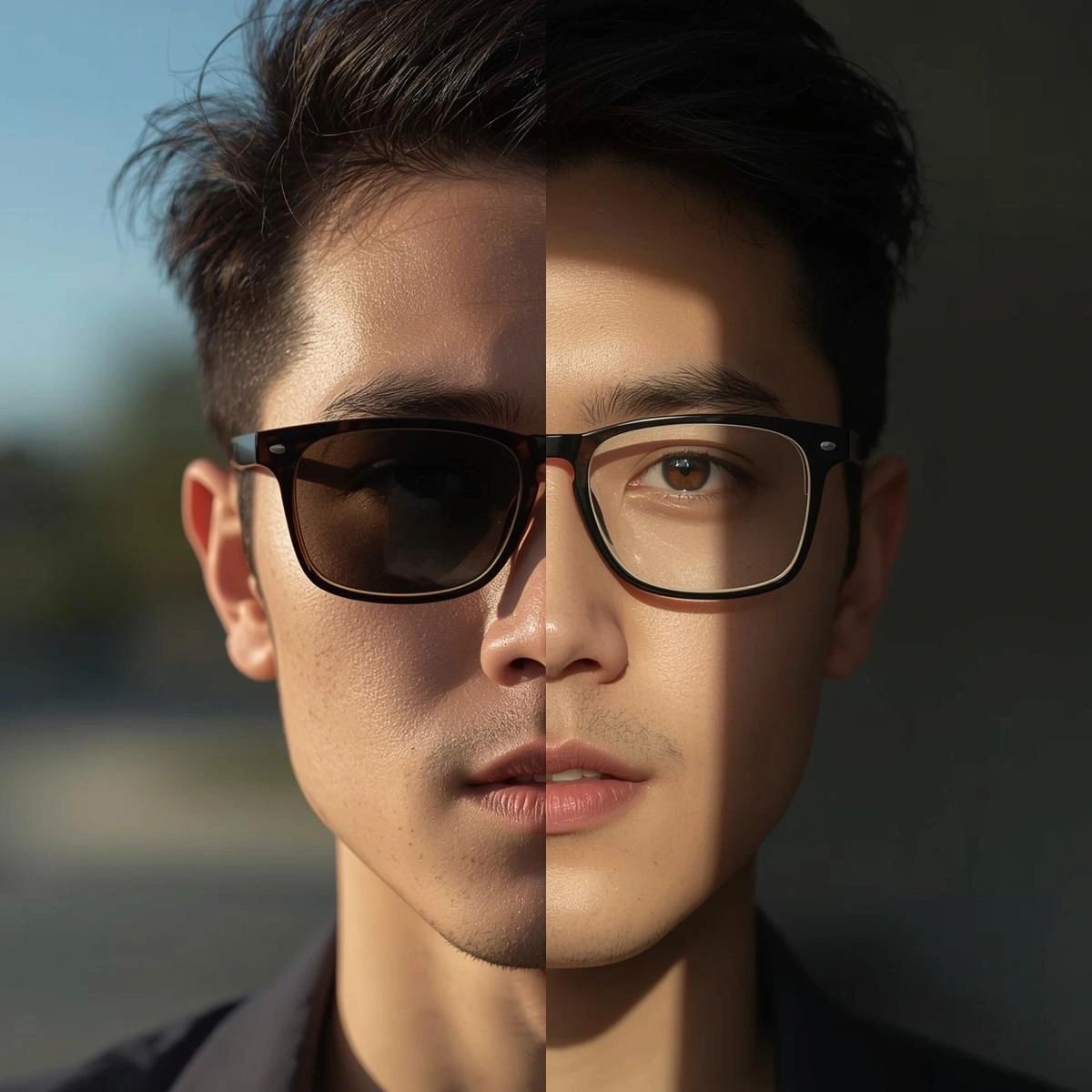 Clear indoors, sunglasses outdoors—two functions in one lens.